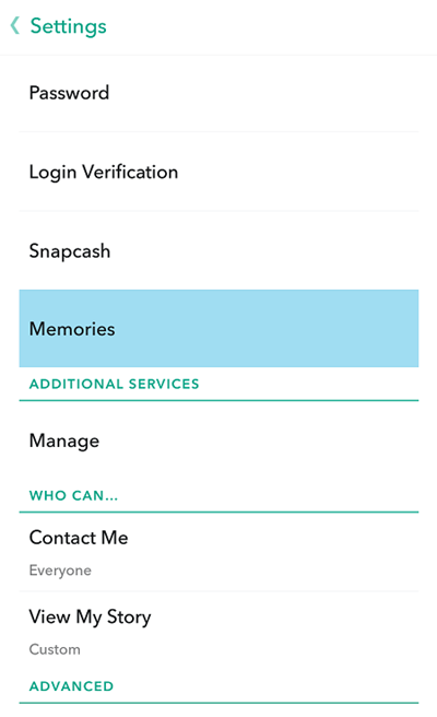 - Tap on the Settings icon and curl downward to Memories.